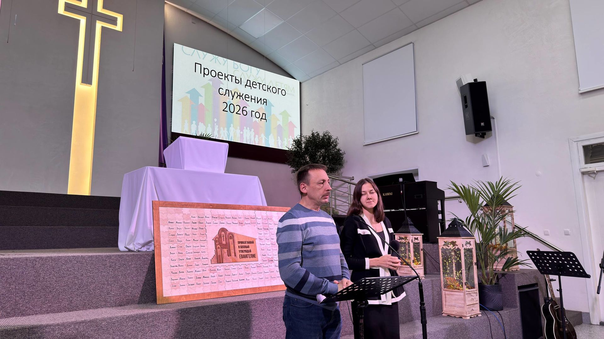 Андрей Пилипенко и Ольга Мицкевич – руководители отдела подросткового и детского служения Российского союза ЕХБ, представили проекты, связанные с предстоящим годом Библии и празднованием 150-летия синодального перевода Священного Писания на Русский язык. Подмосковными церквям было предложено сотрудничество в деле благовестия.